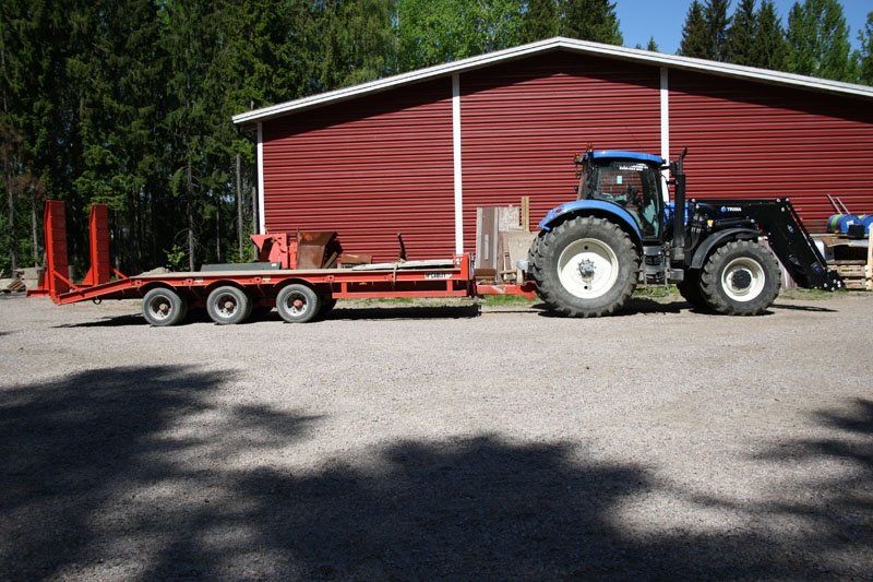 Kalustoomme kuuluu lisäksi esimerkiksi traktorilavetti ja maansiirtoperävaunu traktoriin.