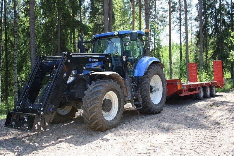 Kalustoomme kuuluu lisäksi esimerkiksi traktorilavetti ja maansiirtoperävaunu traktoriin.